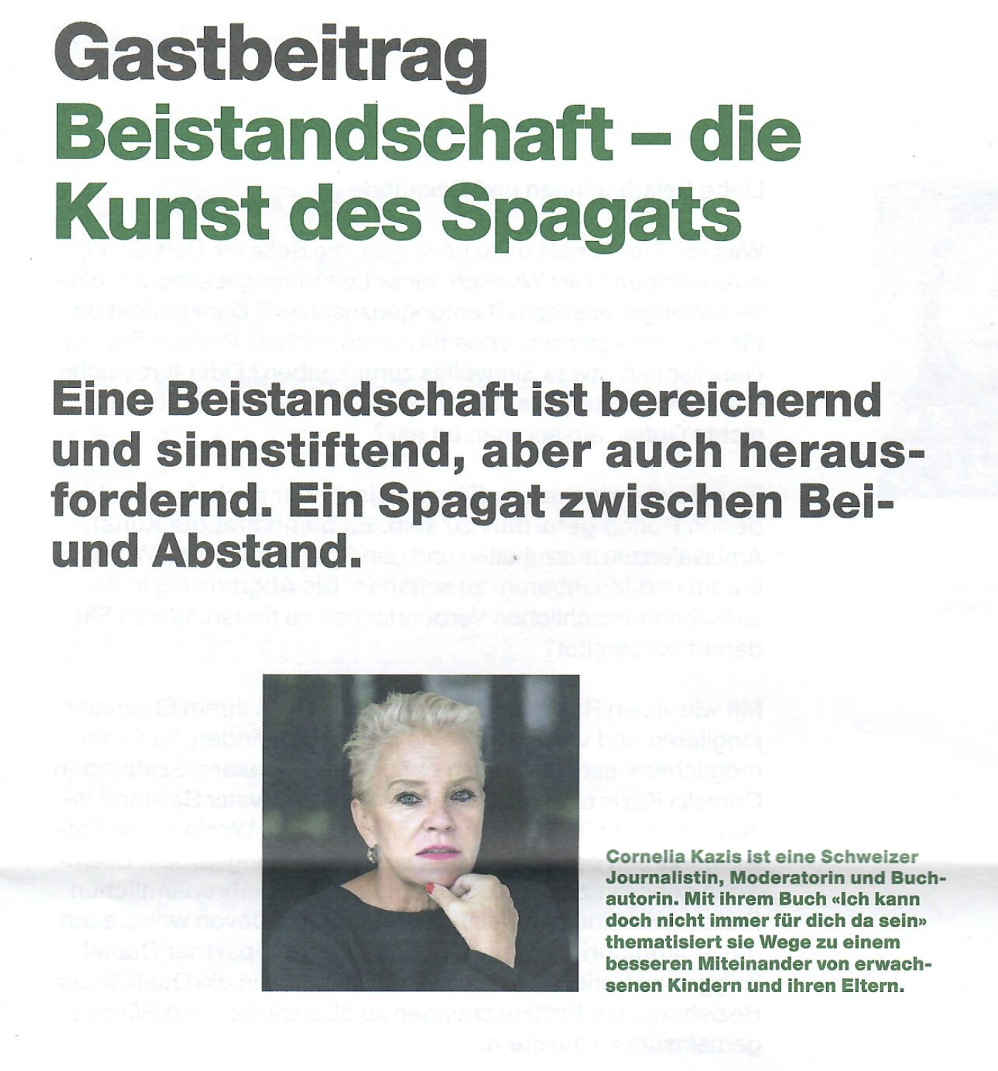 Konflikte im familiären späten Miteinander sind Bettina Ugolinis Spezialgebiet. Ganz gleich ob es um Hinfälligkeit oder Aufmüpfigkeit, um alte Rollen und neue Wege, um Schuld und Schuldigkeit, Entlastung und Überforderung geht,- auf der Beratungsstelle LiA kann alles zur Sprache kommen. Auch tabuisierte Themen wie Scham und Ekel, Chaos und Ordnung oder auch Leidenschaft und späte Lust sind der 61jährigen Gerontopsychologin nicht fremd. Tagtäglich übt sie sich im Spagat zwischen den Erkenntnissen der Altersforschung und der Lösung der Alltagskonflikte ihrer Klientel. Nun, seit Oktober 23, ist ihr reiches Wissen und Können im Sachbuch «Alte Bande» auf 404 Seiten gebannt. Das Versprechen im Untertitel lautet: Wie in späten Jahren eine Beziehung auf Augenhöhe zwischen Eltern und Kindern gelingen kann.